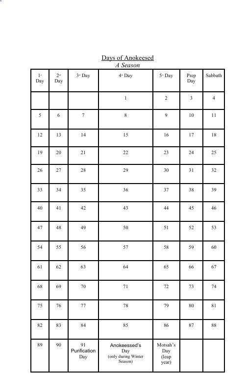 These are the holy days of Anokeesed as established by Enoch